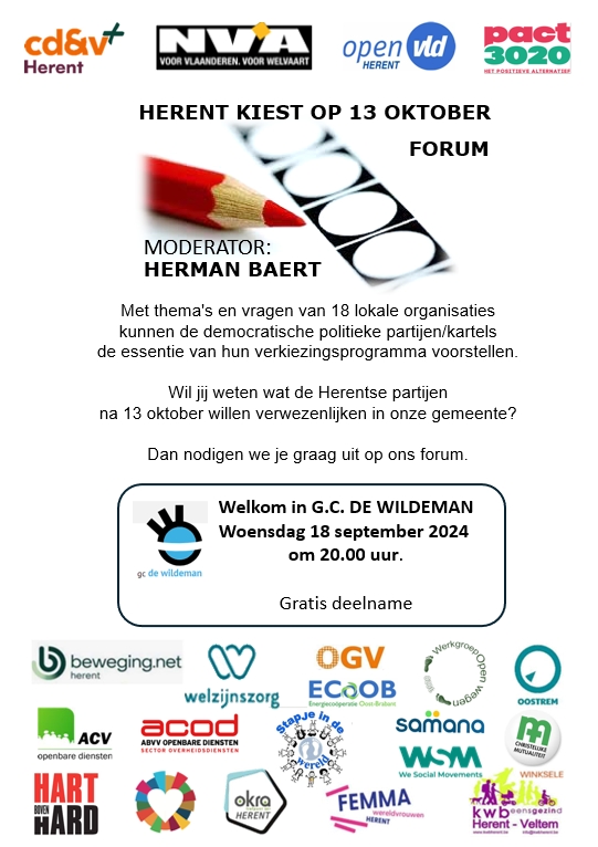 De OGV neemt deel aan het Forum Herent kiest op 18 september. Wat willen de politieke partijen in de komende beleidsperiode verwezenlijken in Herent?