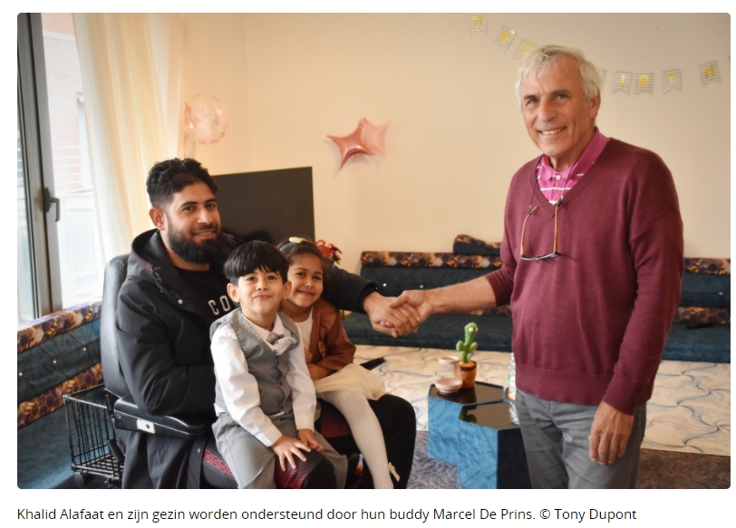In 2021 sprak hij de paus als vluchteling in Lesbos, nu woont hij in Herent. Het gezin van Khalid Alafaat (36) kwam op uitnodiging van vrijwilligers uit Herent naar België.